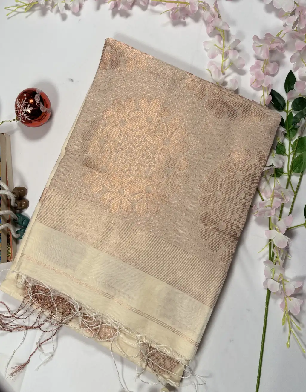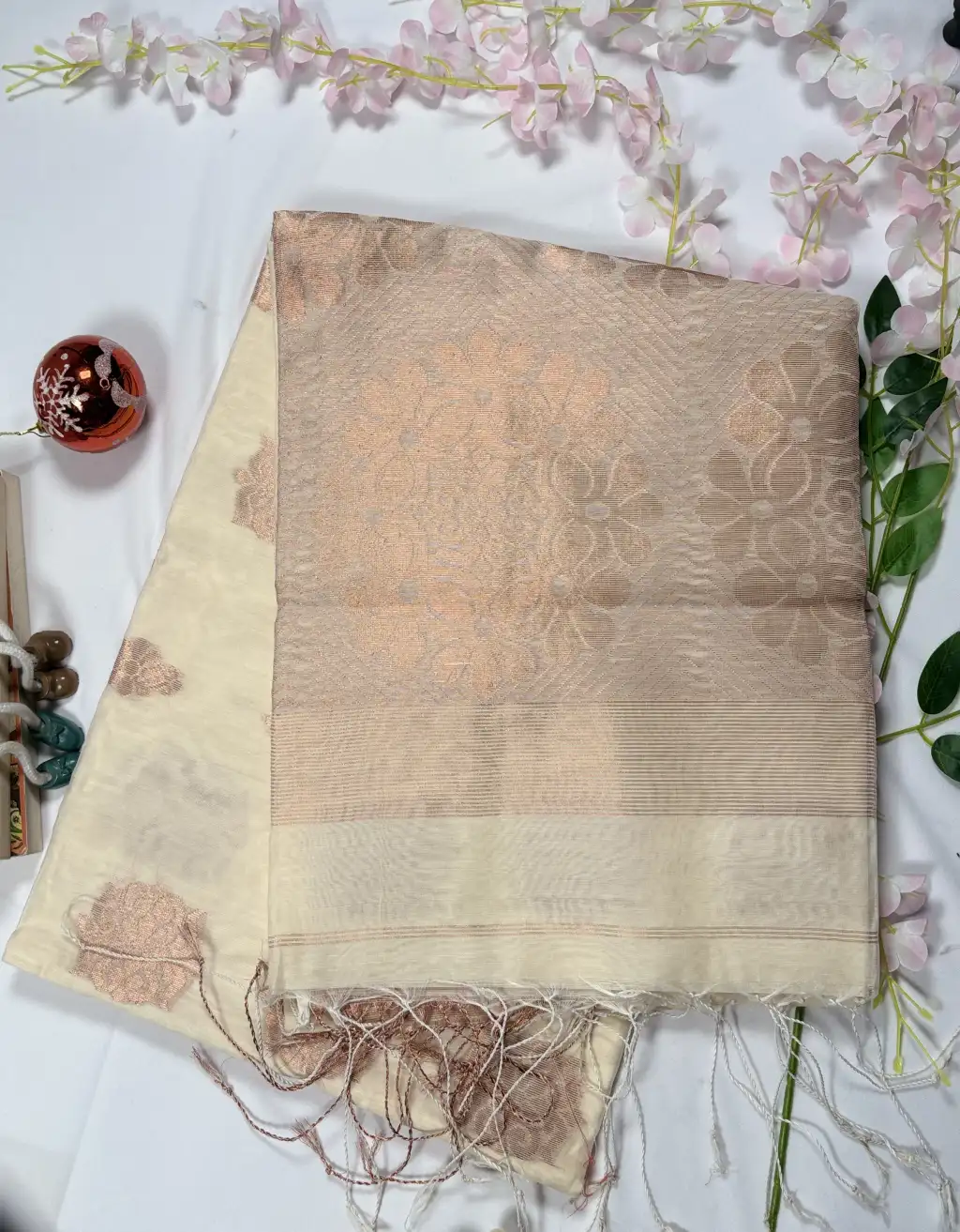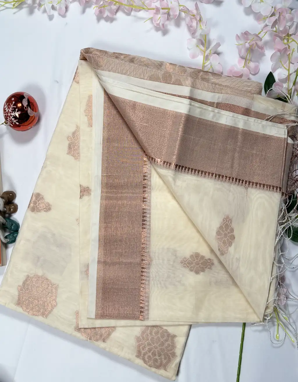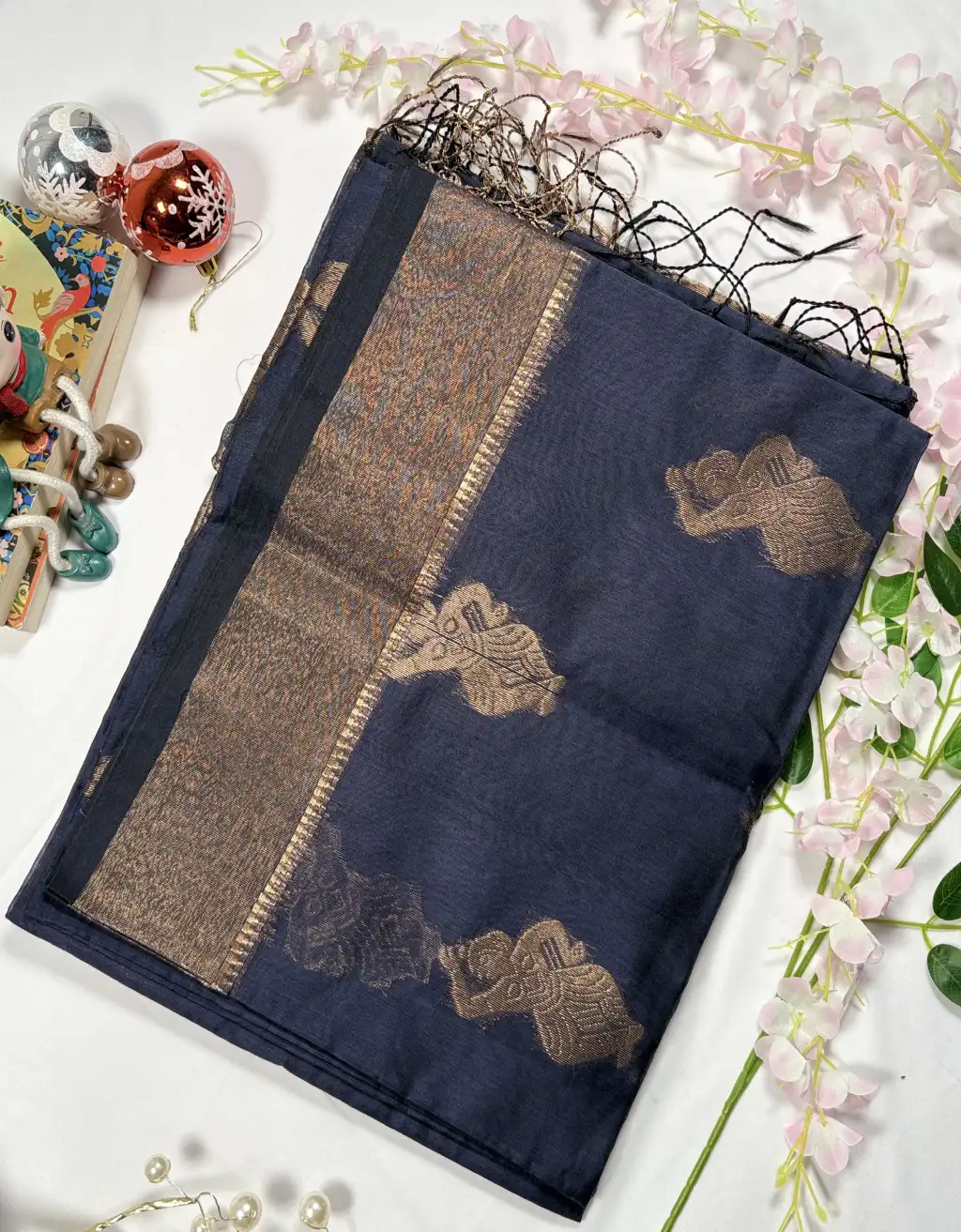 The finely woven border and detailed pallu enhance its regal charm, while the handloom craftsmanship ensures authenticity and uniqueness in every piece. Pair it with statement jewelry and a contrasting blouse to create an effortlessly elegant traditional look.