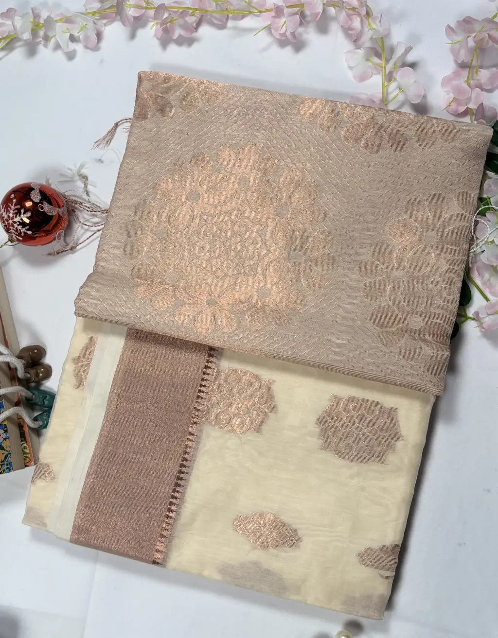 Celebrate India’s rich weaving heritage with this Handloom Banarasi Saree, meticulously crafted by skilled artisans. The saree showcases elegant floral and traditional motifs woven with subtle zari work, creating a luxurious yet refined appeal. Its rich texture, graceful drape, and classic color palette make it an ideal choice for weddings, festive gatherings, pujas, and formal occasions.