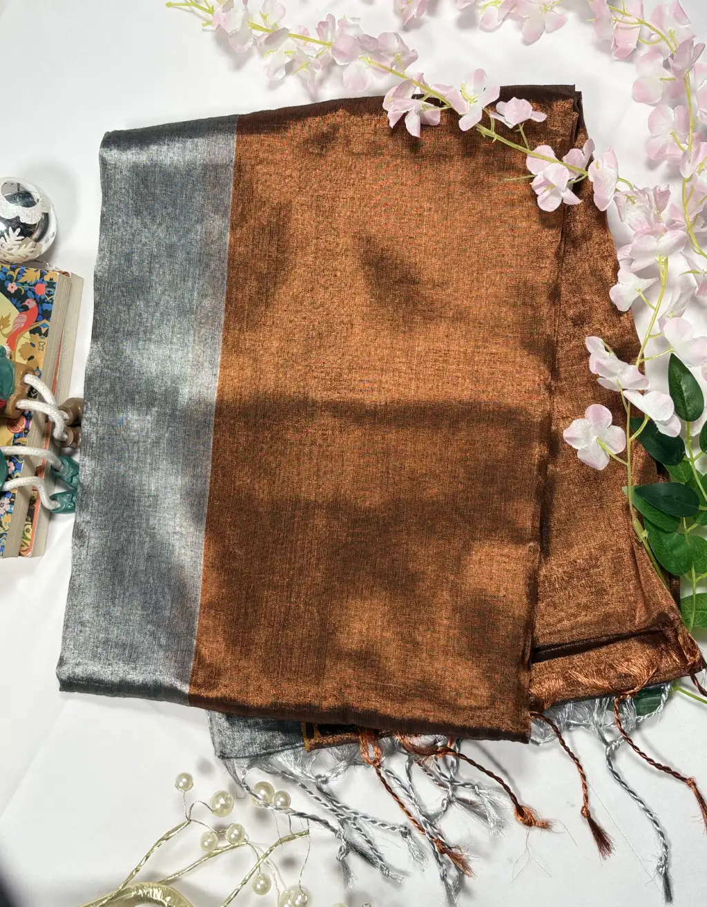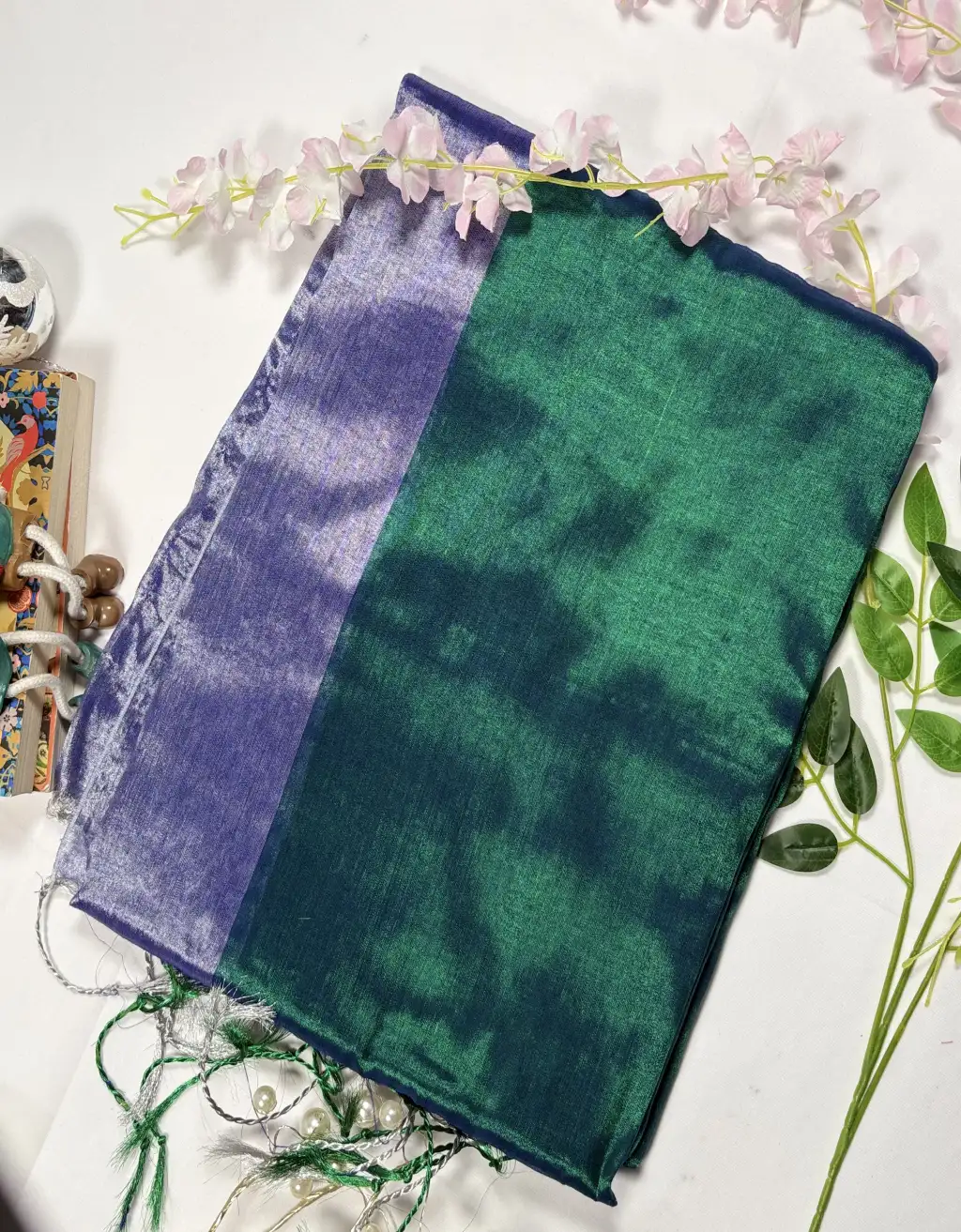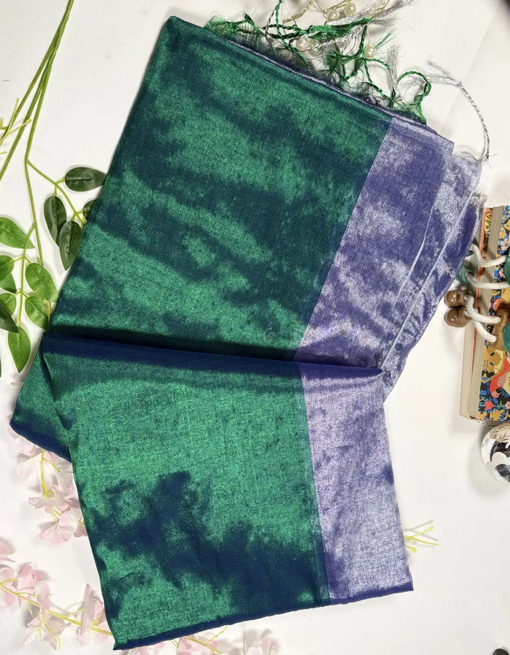 The natural sheen of tissue lends a subtle glow, while the fluid drape ensures comfort and elegance throughout the day. Delicate woven textures and tassel detailing at the pallu enhance its handcrafted charm. Ideal for festive gatherings, cultural events, evening functions, or minimal bridal trousseaus, this saree effortlessly bridges tradition and contemporary style.