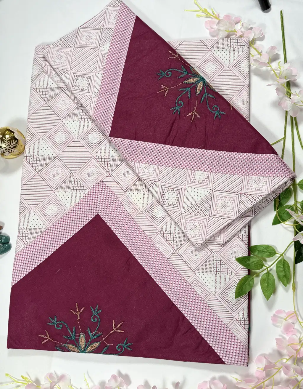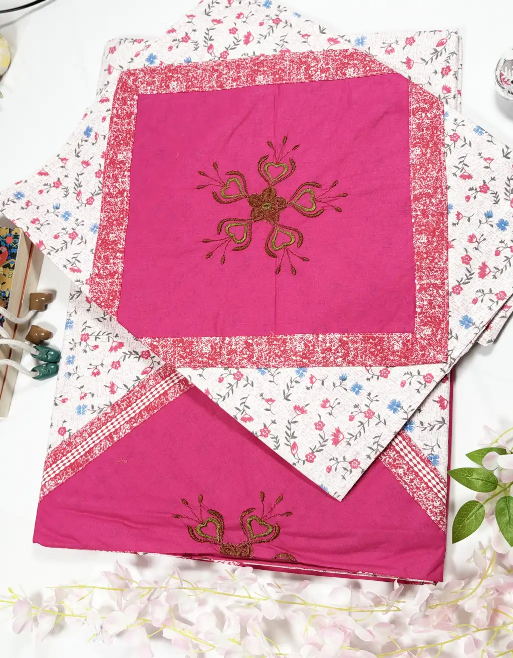 The matching pillow covers complete the coordinated appearance, making this set ideal for gifting, festive décor, or transforming your home with a touch of heritage craftsmanship. Durable, easy to maintain, and visually striking, this embroidered patchwork bedsheet set brings beauty, comfort, and artistry together in one perfect package.