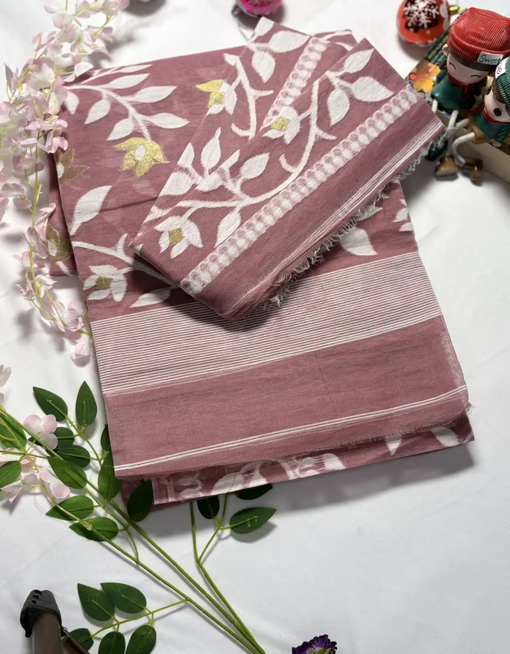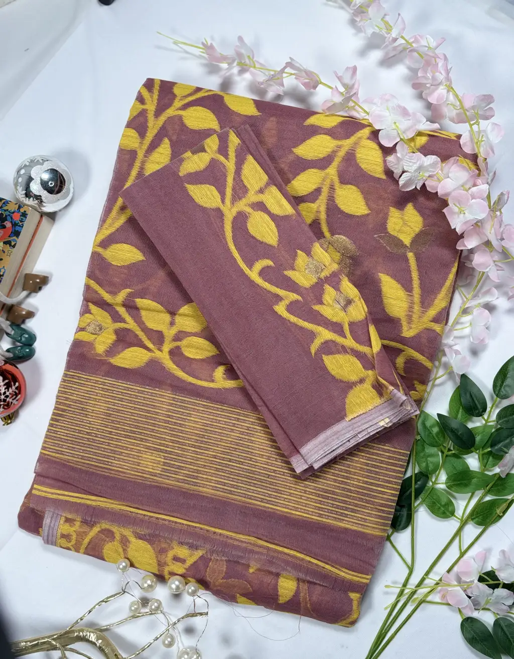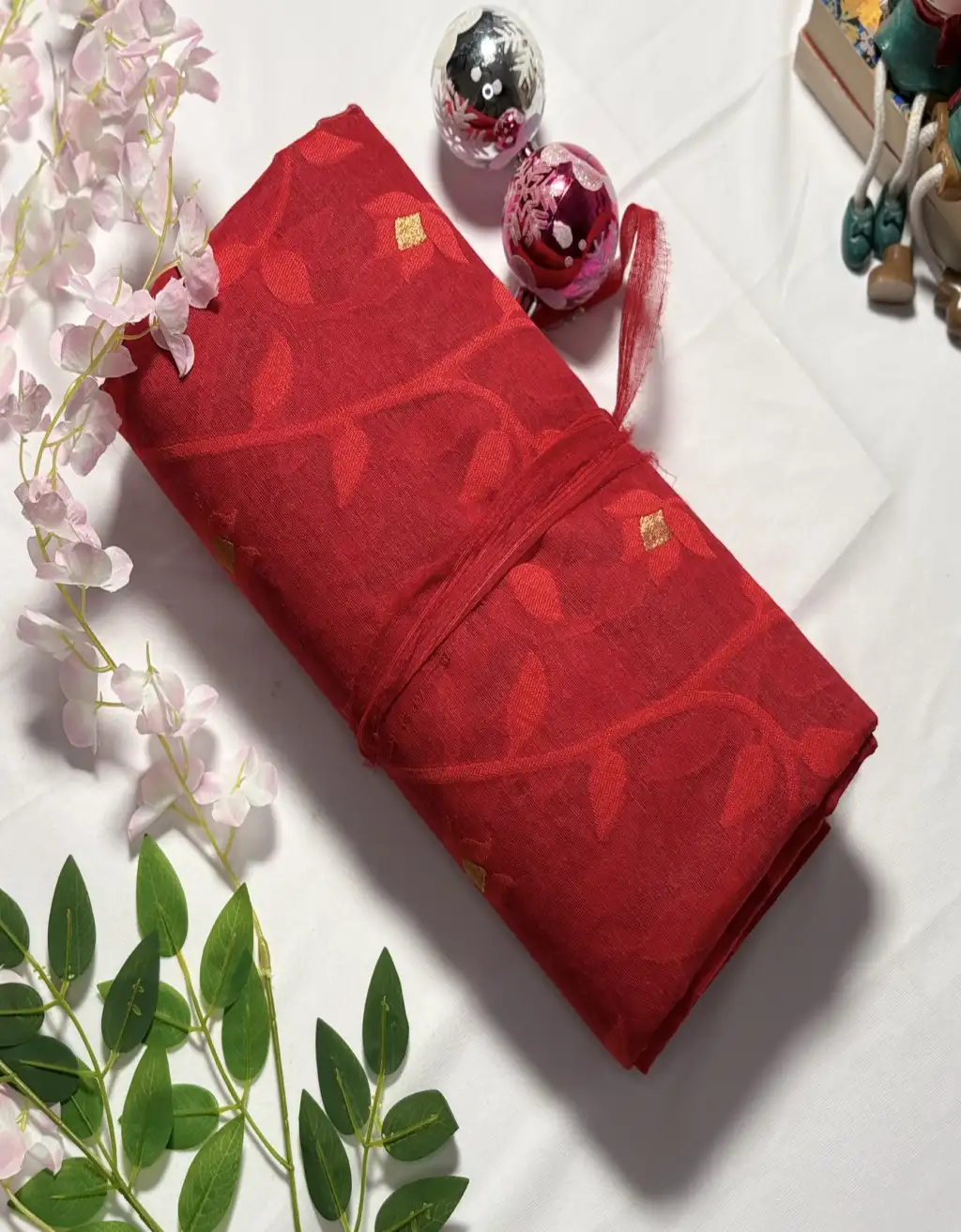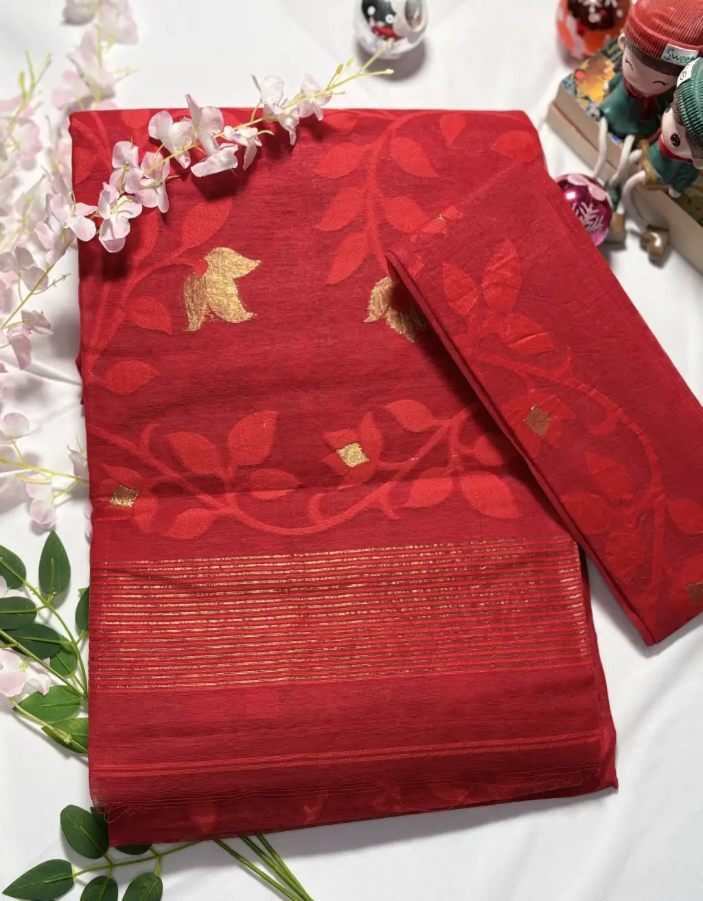 This saree offers a soft, breathable, and feather-light feel, making it exceptionally comfortable for long wear. The intricate designs, combined with traditional craftsmanship, make it a perfect choice for festivals, pujas, weddings, or elegant daytime events. Pair it with a traditional blouse and silver or gold jewelry to complete your captivating ethnic look.