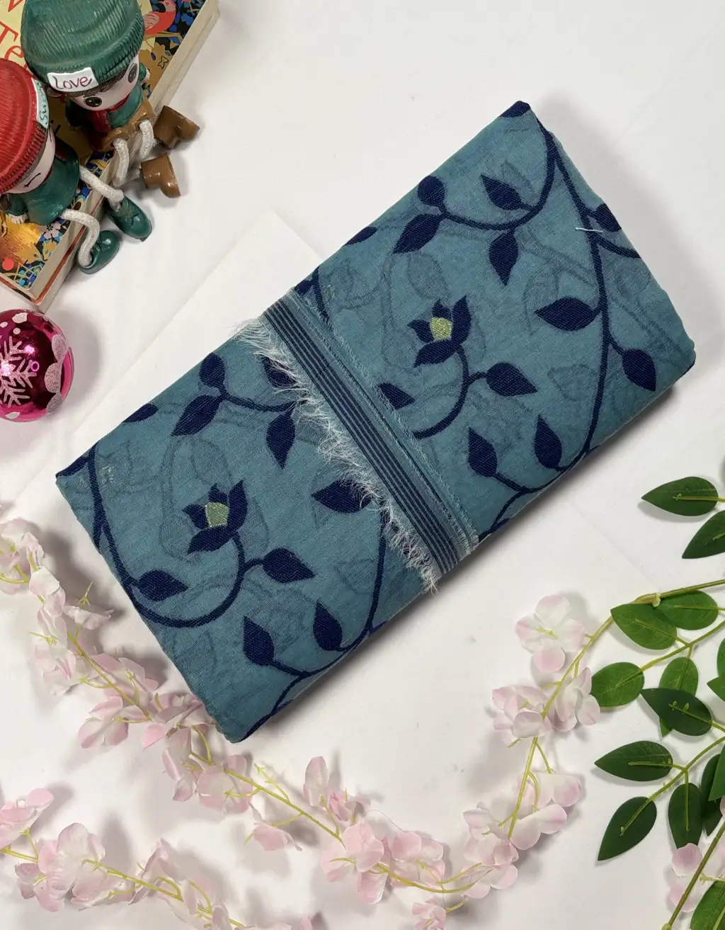 Celebrate the rich weaving heritage of Bengal with this stunning Handwoven Bengali Jamdani Saree, a masterpiece known for its fine craftsmanship and symbolic motifs. Made using the age-old Jamdani technique, each motif is meticulously handwoven into the fabric, creating a luxurious texture and a beautiful interplay of pattern and color.