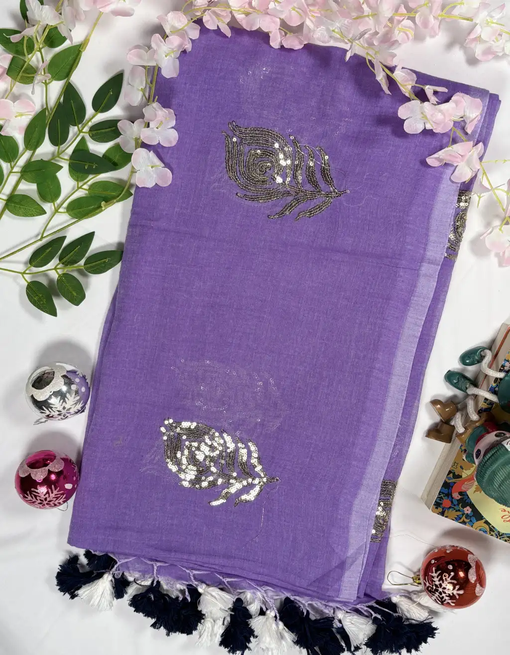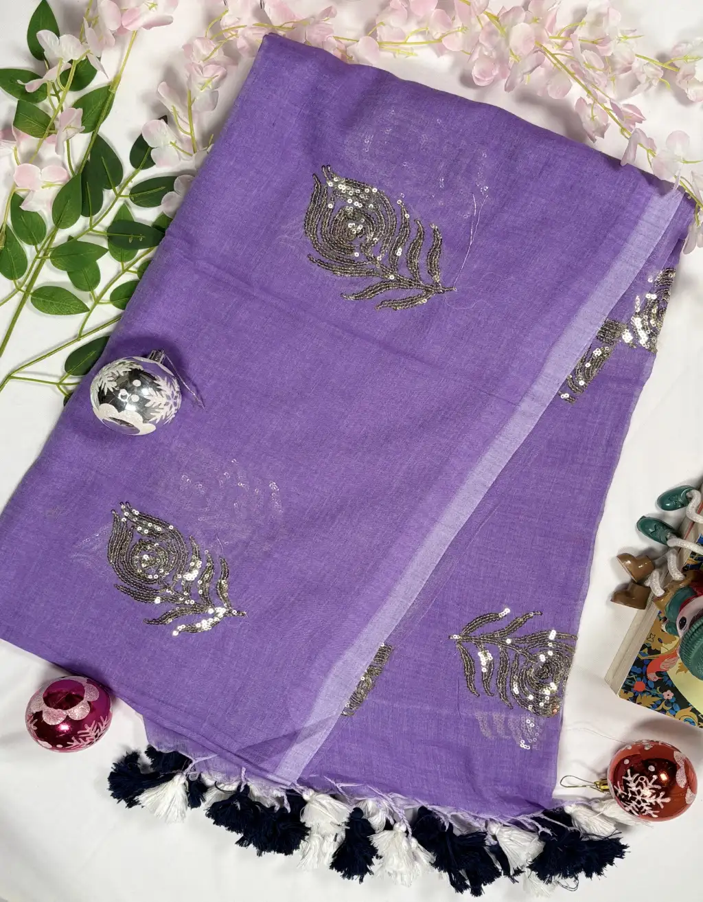 Elevate your ethnic wardrobe with this elegant Mul Cotton Sequin Leaf Saree, featuring delicate handcrafted sequin leaf motifs on ultra-soft mulmul cotton. Lightweight, breathable, and beautifully draped, it’s perfect for festive, casual, and daily wear.
