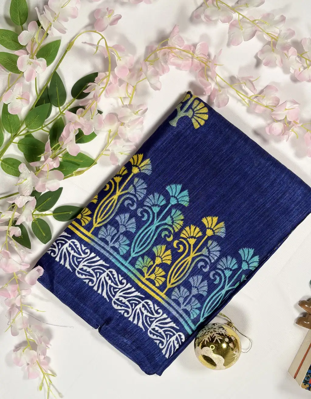 The vibrant floral motifs, complemented by a beautifully woven border, add a touch of traditional artistry blended with modern aesthetics. Perfect for festive occasions, celebrations, cultural gatherings, and elegant everyday styling, this saree stands out for its refined craftsmanship and timeless appeal.